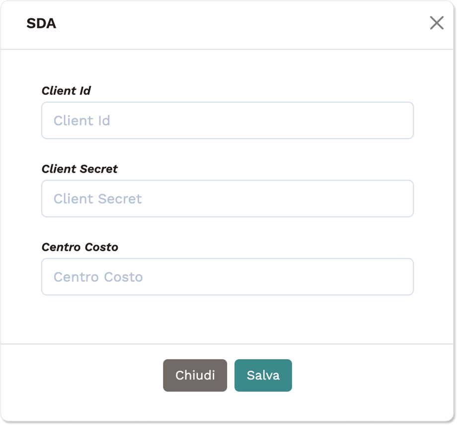Queste informazioni ti sono state fornite direttamente da SDA nel contratto stipulato con Poste Italiane. Una volta compilati tutti i campi, salva per completare l’integrazione. Da questo momento in poi, Emawerly sarà collegato al tuo account SDA.
