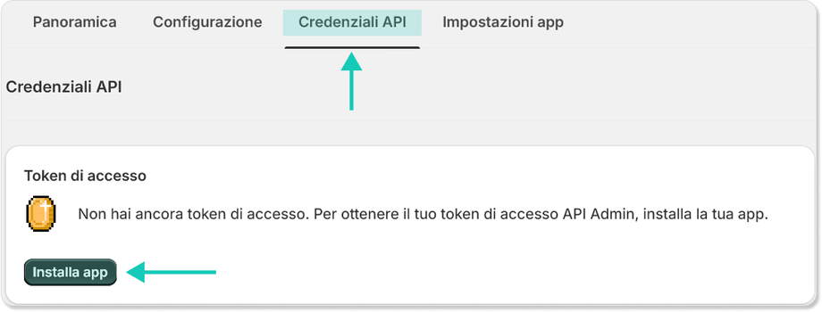 Dopo aver salvato la configurazione degli ambiti API, spostati sulla scheda “Credenziali API”. In questa schermata, clicca su “Installa app” per completare l’installazione.