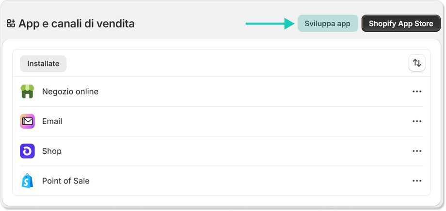 - Fare clic sulla voce “Impostazioni applicazioni e canali di vendita” per accedere alla configurazione avanzata.